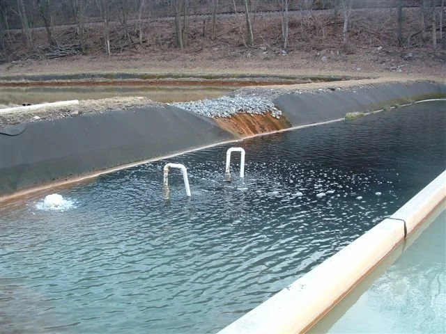 Mine drainage can be successfully treated by active chemical addition, however, this method has high building and maintenance costs. Passive treatment methods, which are far less expensive, have begun to be used to treat mine drainage. A successful method involves the use of limestone to reduce the acidity and ponds to collect the yellow boy.